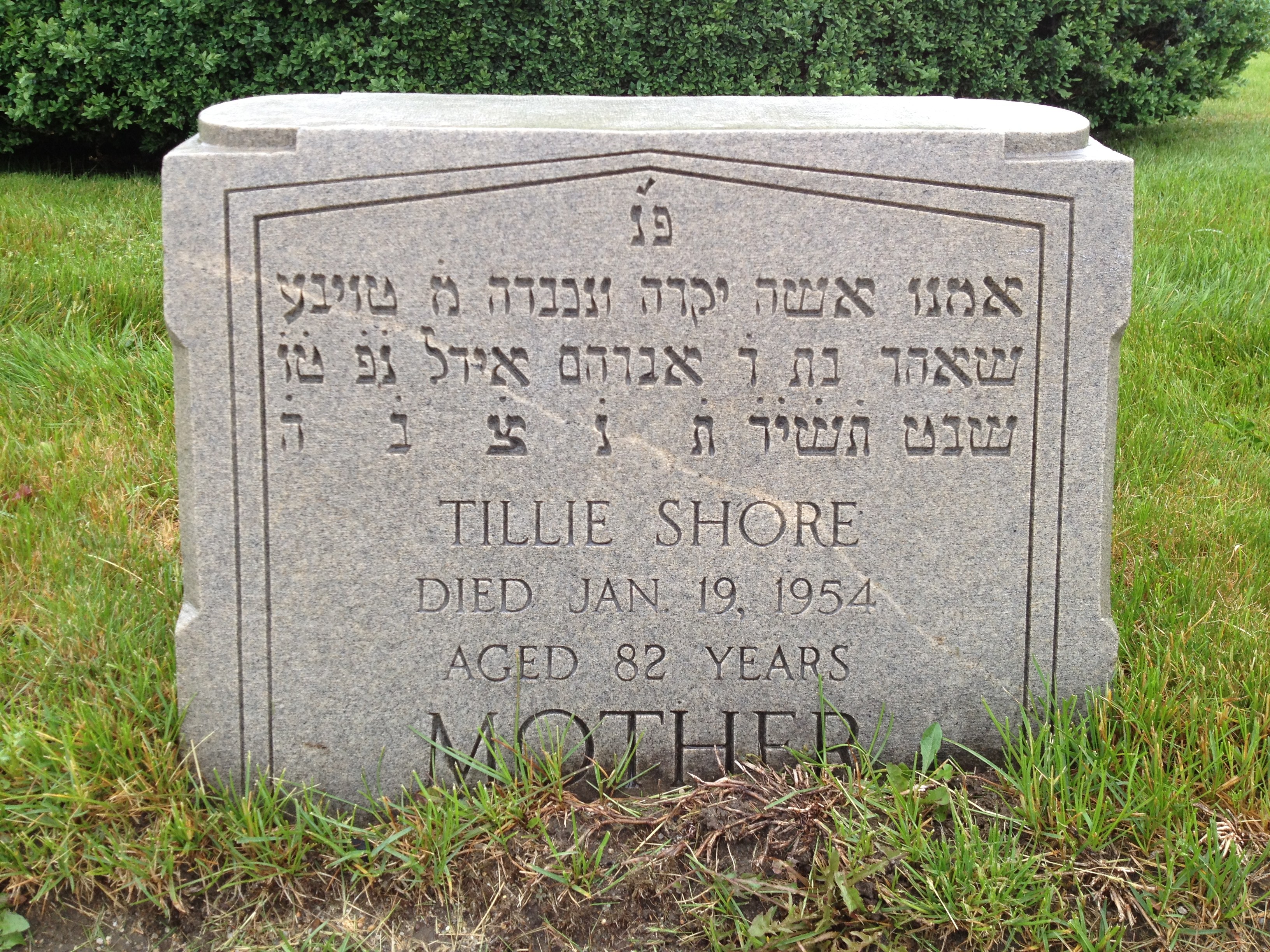 He died April 30, 1944. Tillie died January 19, 1954 (Tu b’Shvat). Both are buried at Lincoln Park Cemetery. They had seven children, including Samuel Oscar (Asher) Shore — the primary conduit for family oral tradition that eventually reached Ruth Mondlick and shaped much of this research.